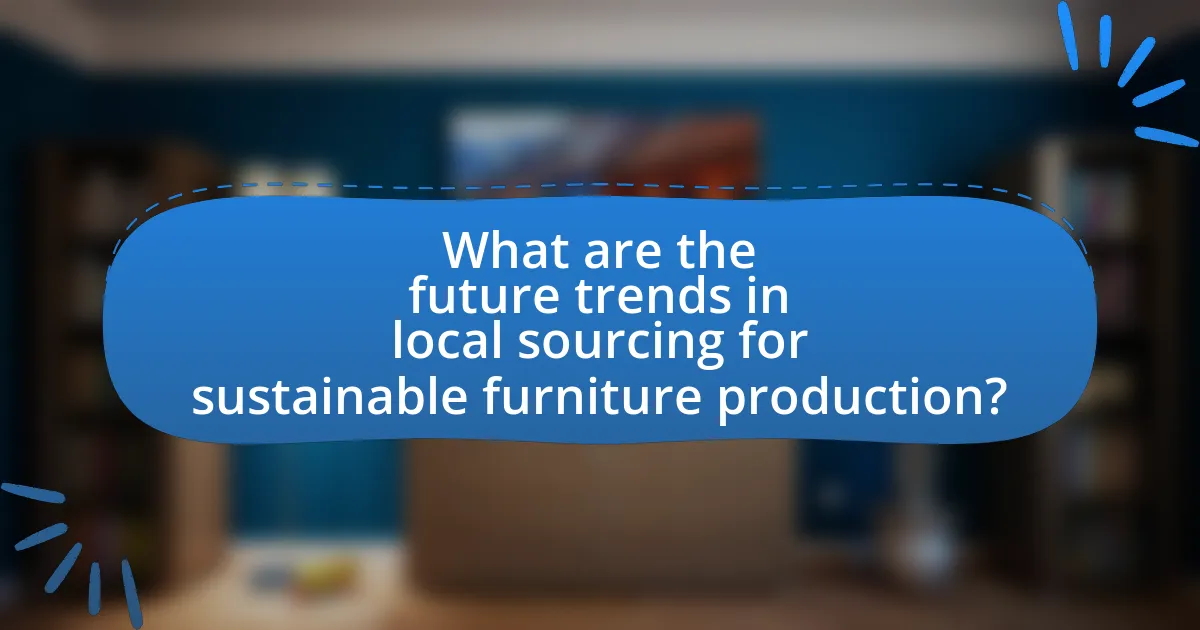 Future trends in local sourcing for sustainable furniture production include increased use of reclaimed materials, a focus on regional craftsmanship, and the integration of technology for supply chain transparency. Reclaimed materials reduce waste and carbon footprint, while regional craftsmanship supports local economies and ensures quality. Additionally, technology such as blockchain enhances traceability, allowing consumers to verify the sustainability of their purchases. According to a 2022 report by the Ellen MacArthur Foundation, local sourcing can significantly lower transportation emissions, aligning with global sustainability goals.